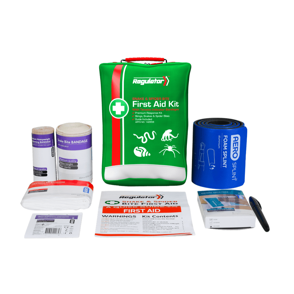 The snake bite and spider first aid kit comes complete with Tension Indicator Bandages that have been a massive success in assisting people to achieve the correct tension needed while performing the Pressure Immobilisation Technique – which is used for the treatment of all Australian snake bites, Funnel Web Spider bites, Blue Ringed Octopus stings and Cone Shell stings.